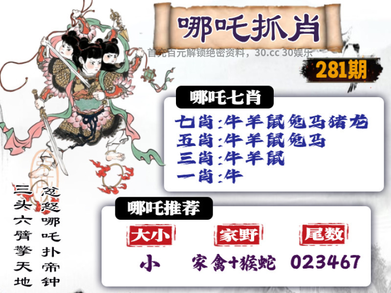 281期:神级七肖╠猪龙兔鼠狗猴蛇╣开:羊47